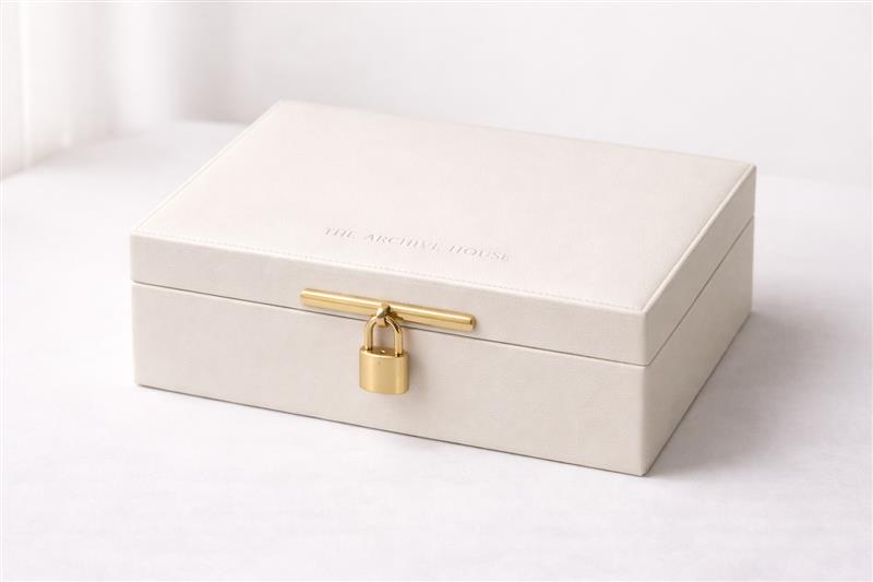 A sculptural keepsake case designed to hold life’s most important chapters.